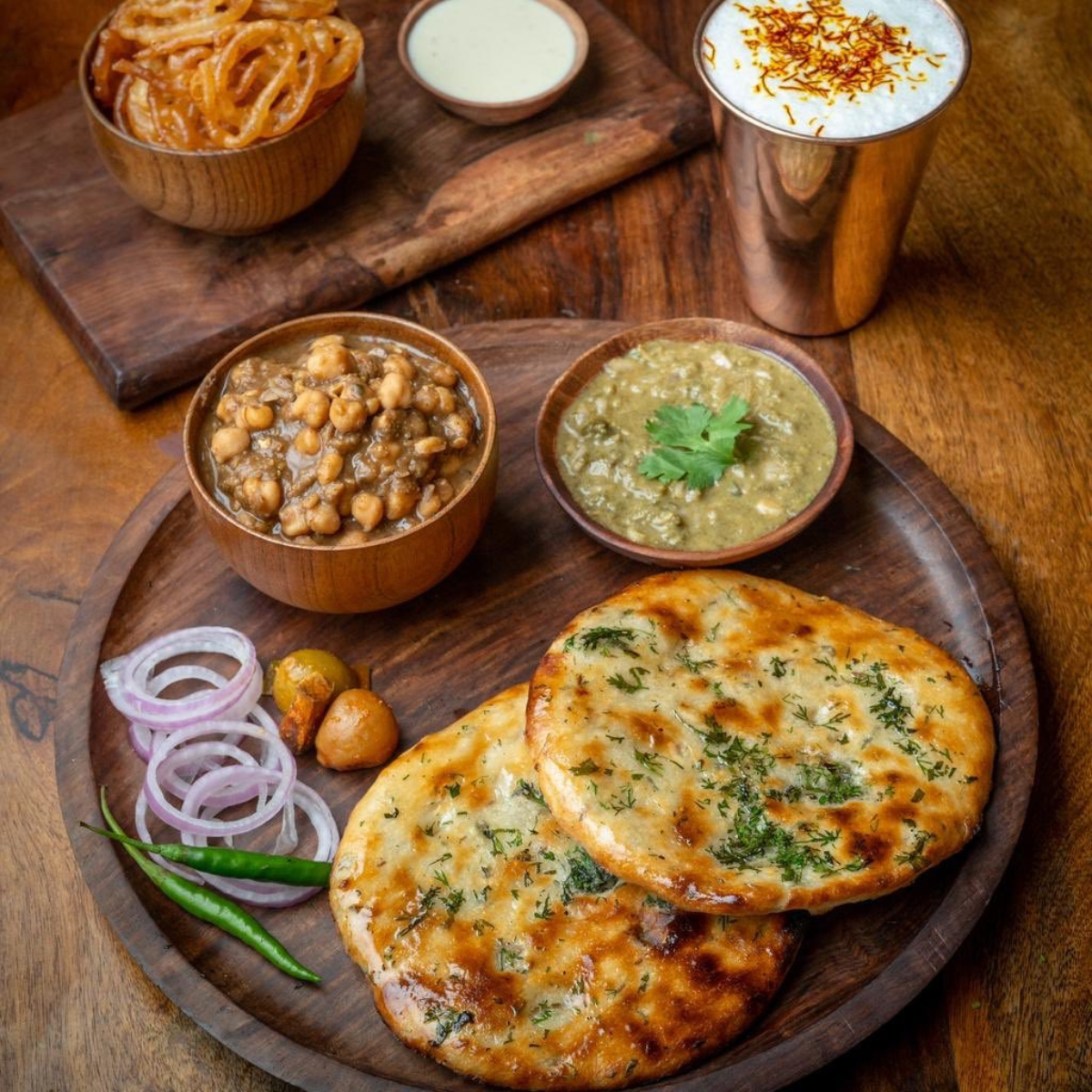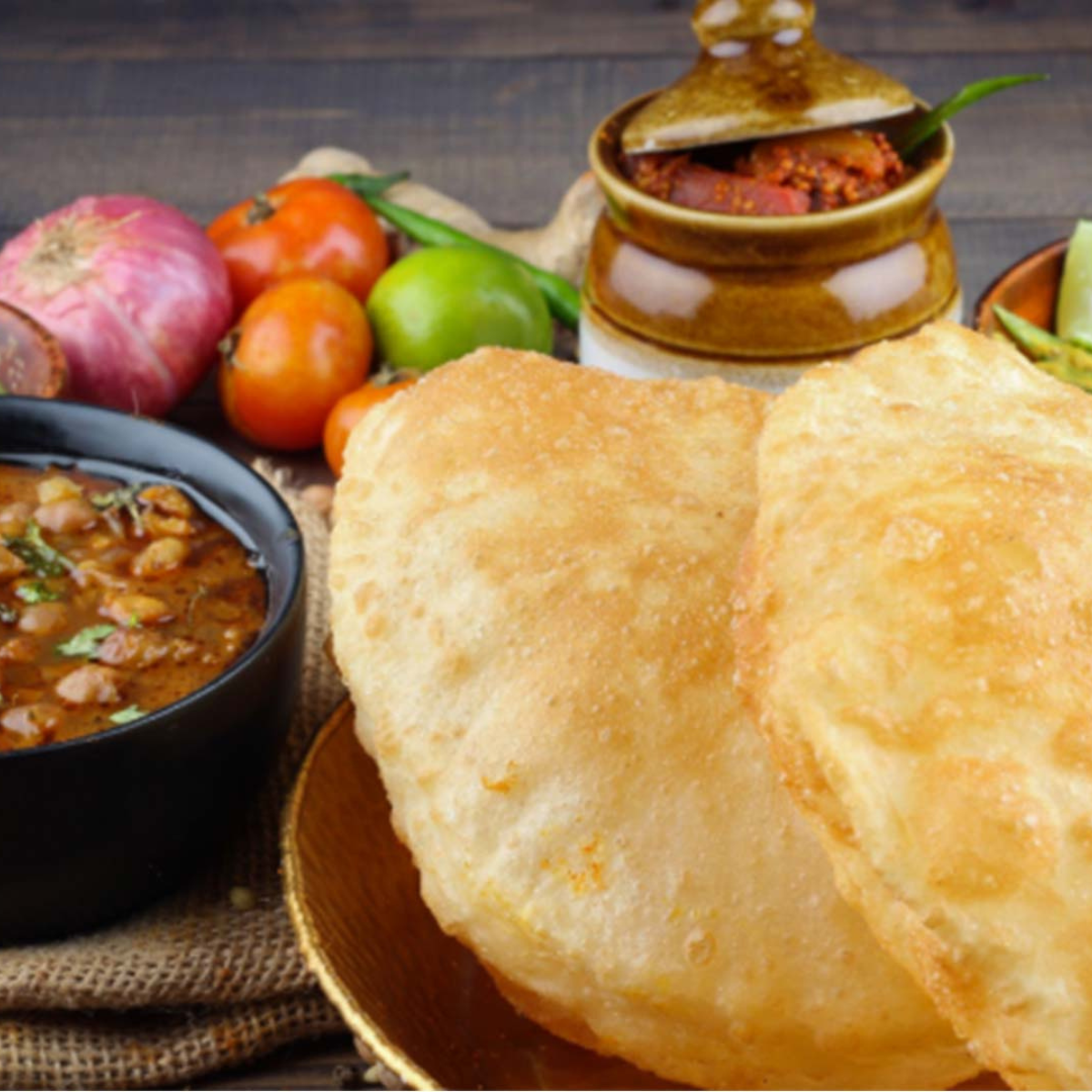 Puri Channa + Jeera Aaloo + Halwa + Pickle + Salad (Only Weekend)